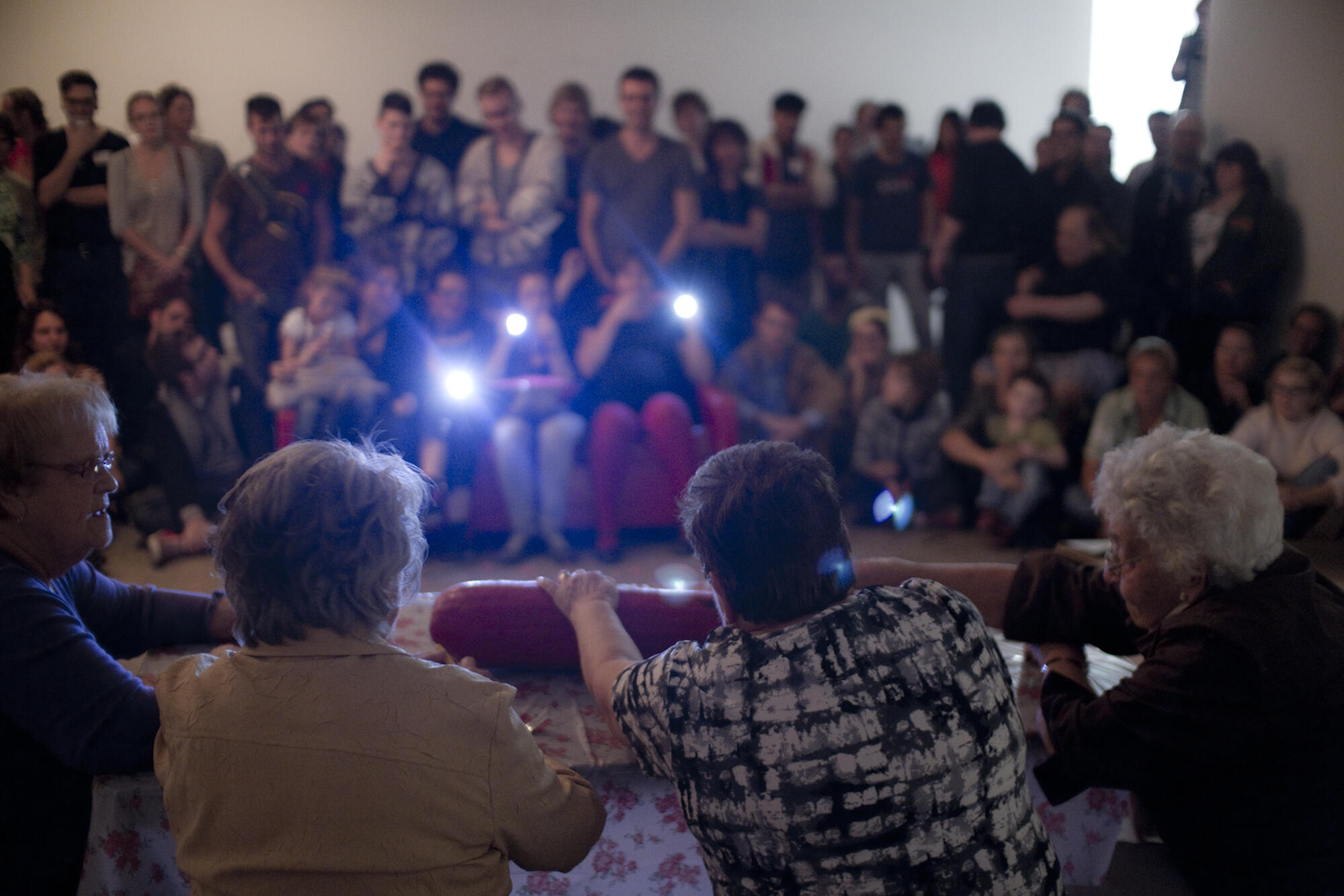 Invitation de la galerie Le Lobe pour faire une performance dans le cadre des Rencontres Internationales des Arts de la Performance. Avatars est un projet fait en collaboration avec quatre dames âgées d’environ quatre-vingt ans arrivant dans des boîtes de réfrigérateur. À l’aide d’exacto elles sortent de leur boîte en découpant la silhouette d’une des Poulpes. Ensuite, les quatre dames vont à une table et détruisent une courge à l’aide d’ustensiles.