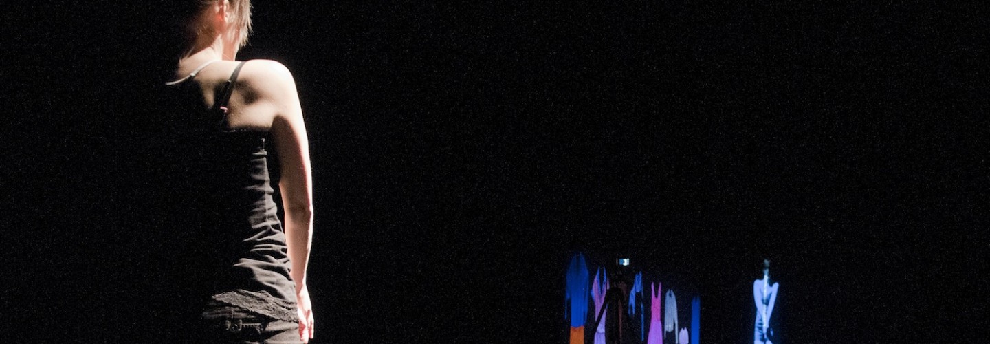 Exploration de l’image vidéo projetée en tant que costume. Un projet construit à l’aide d’extraits de livres de signatures de la galerie l’Oeuvre de l’Autre pour en tisser la trame textuelle.